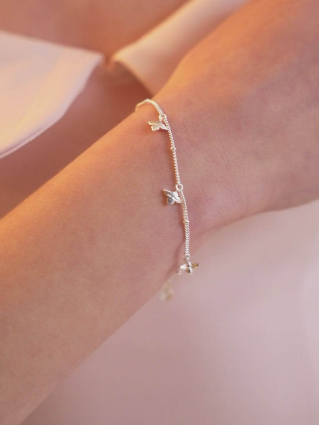 Unique adjustable bracelet, featuring multiple intricately handcrafted bees, each piece is full of delicate detail. Made with sterling silver, the bracelet is adjustable. Perfect for layering or wearing on its own.